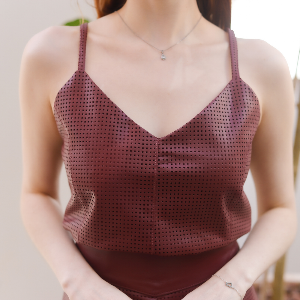 Blusa Couro Pelica Perfurada Marsala - Karine Daher