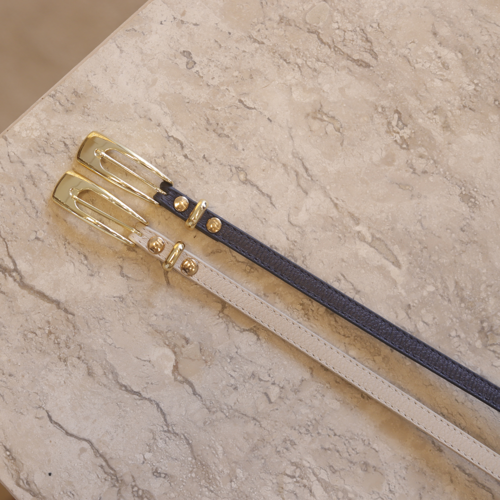 Detalhe: Todo em couro, fino e fivela em metal na cor douradoMaterial: Couro